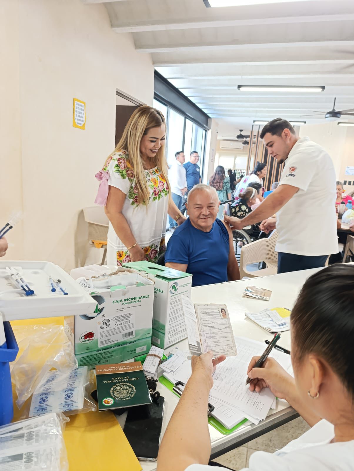 Para proteger a las y los adultos mayores en esta temporada de enfermedades respiratorias, se realizó una jornada de vacunación en la Casa del Adulto Mayor “Pilar de Luz”, actividad supervisada por la presidenta del DIF municipal, Raquel Balam Rocha de Bojórquez.