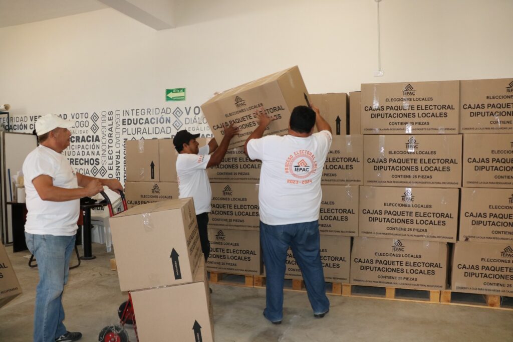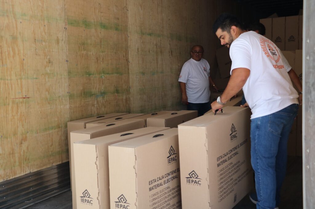 Por la mañana, previo a la Sesión Ordinaria, se recibió en la bodega institucional del IEPAC la segunda remesa de material electoral, consistente en 3,150 cajas para los paquetes de diputaciones y 3,150 para los paquetes de gubernatura, así como 191 contenedores de material electoral y 28 tarimas.