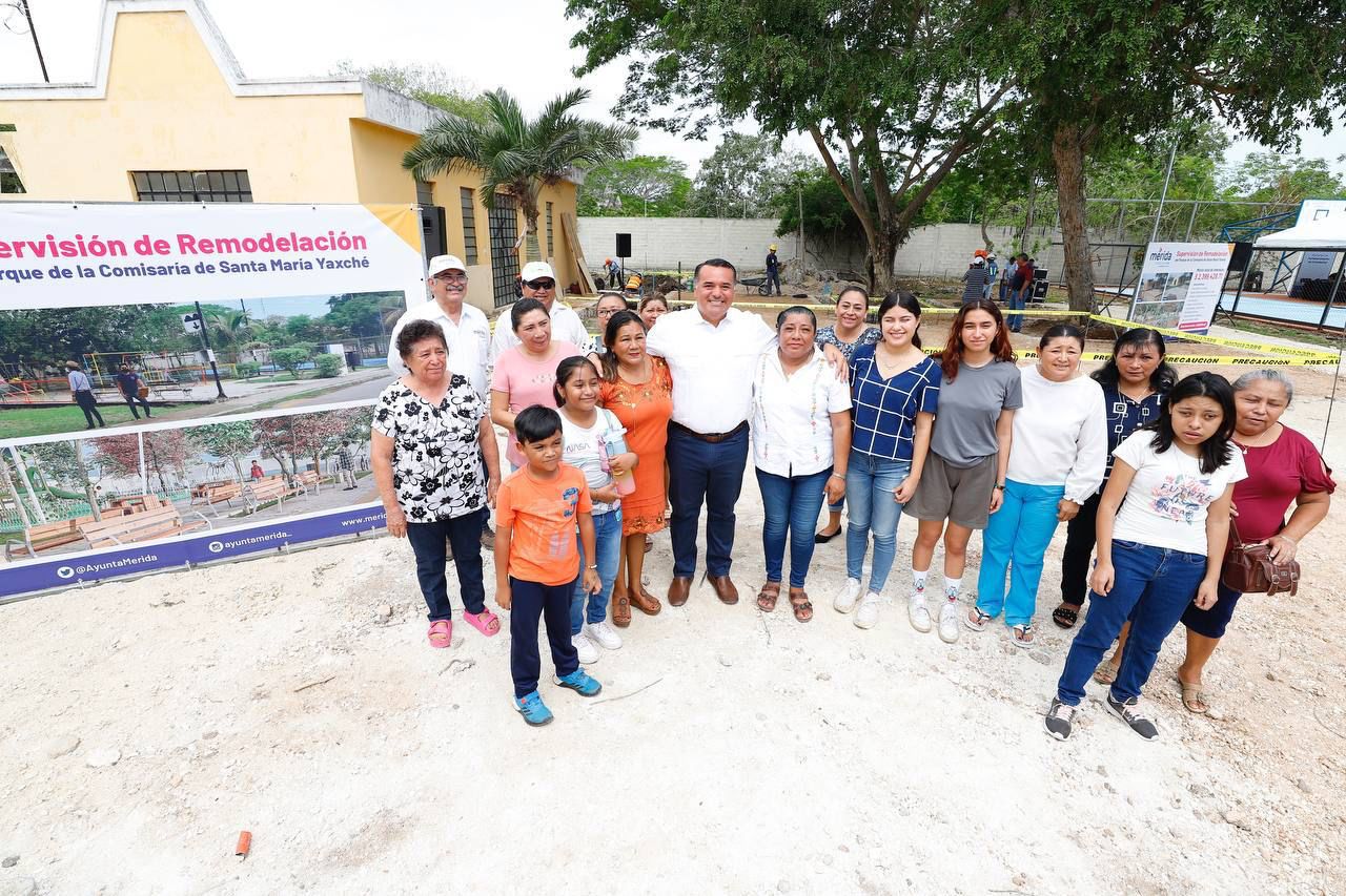 Acompañado de Felipa De Jesús Couoh Hoil, comisaria de Santa María Yaxché y de los directores David Loría Magdub, de Obras Públicas y José Collado Soberanis, de Servicios Públicos Municipales, Barrera Concha mencionó que la remodelación del parque, como las otras 22 intervenciones que se efectuaron en 2022, se realiza bajo el esquema de Diseño Participativo de Espacios Públicos.