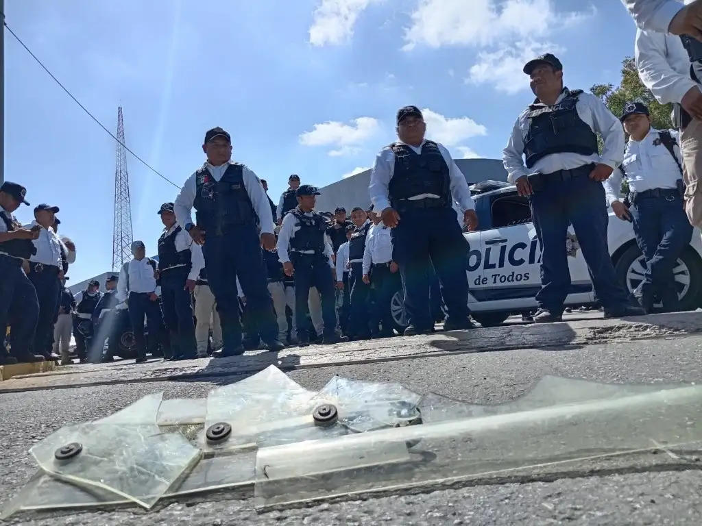 Medio millar de uniformados se congregaron afuera de las instalaciones policiacas, impidiendo la entrada y salida de las unidades. Esta acción paralizó el servicio de seguridad policiaca en la localidad.