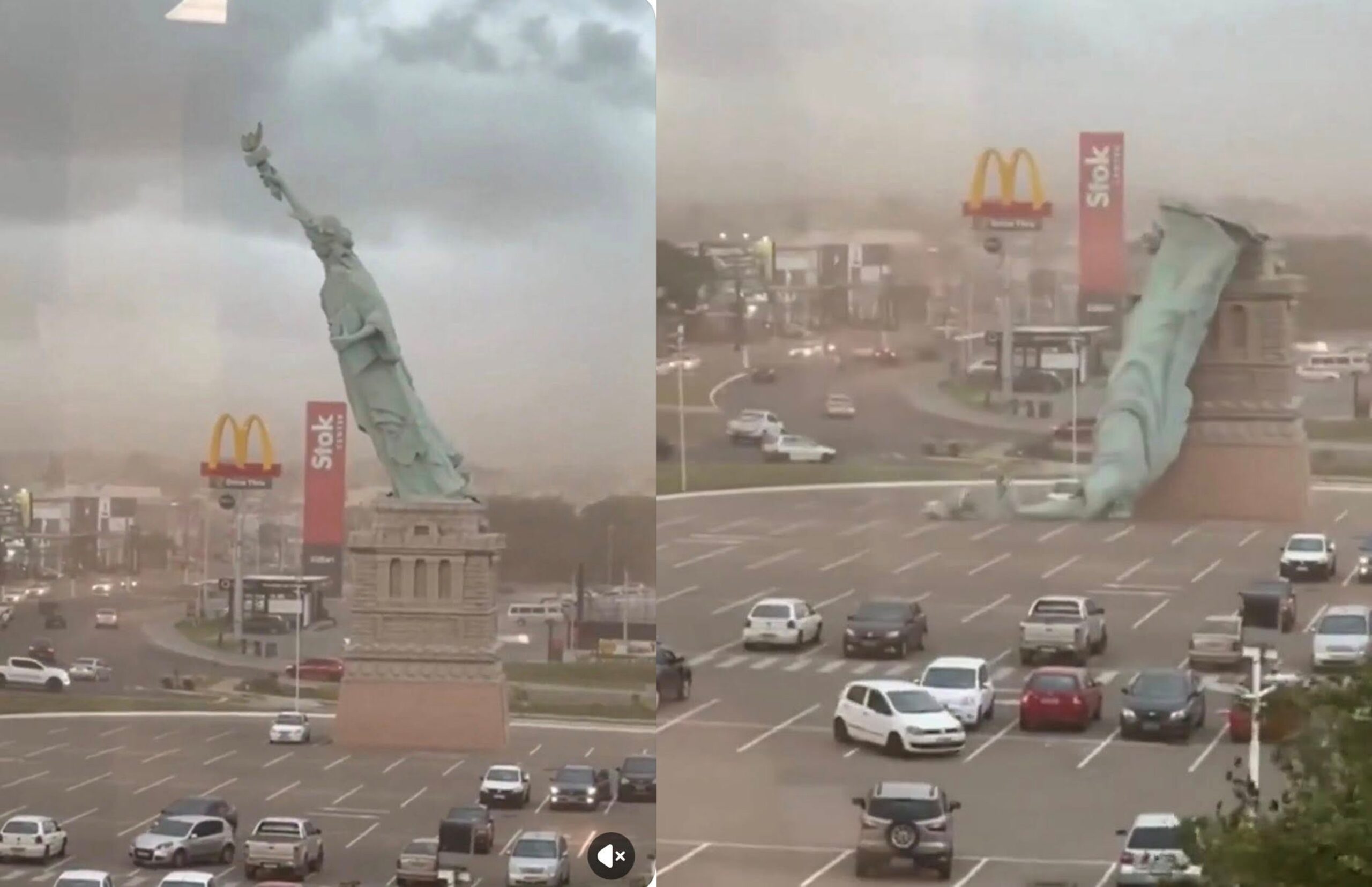 Un inusual suceso se registró en Guaíba, Brasil, cuando un fuerte vendaval con ráfagas de hasta 80 km/h derribó una enorme réplica de la Estatua de la Libertad.