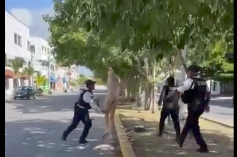 El testimonio de los agentes que intervinieron en este caso señala que el hombre deambulaba sin ropa en la avenida Colosio, a la altura de la 10, cuando le dieron alcance para interrogarlo, al pensar que había sido asaltado; sin embargo, el extranjero reacción de manera violenta y golpeó con el codo a un uniformado, lesionándolo en la boca.