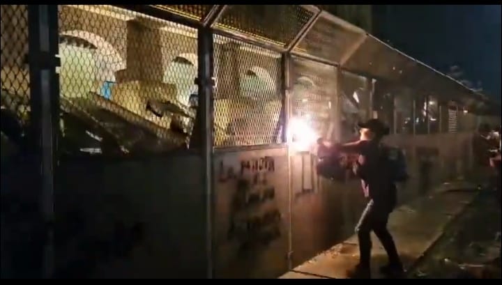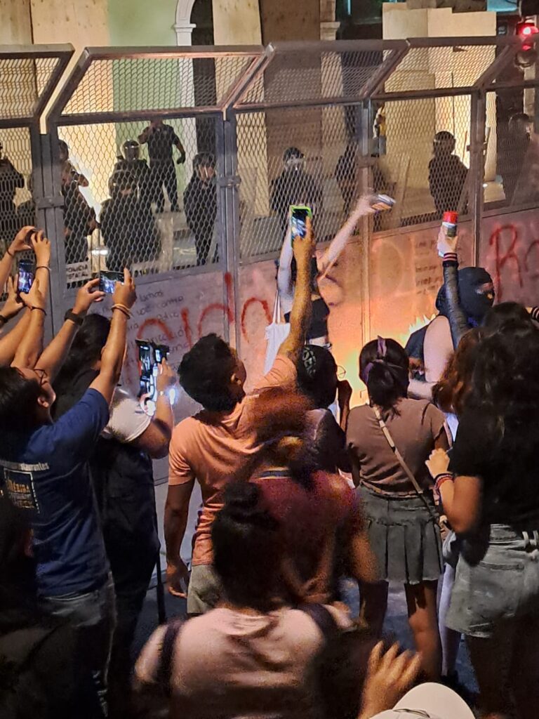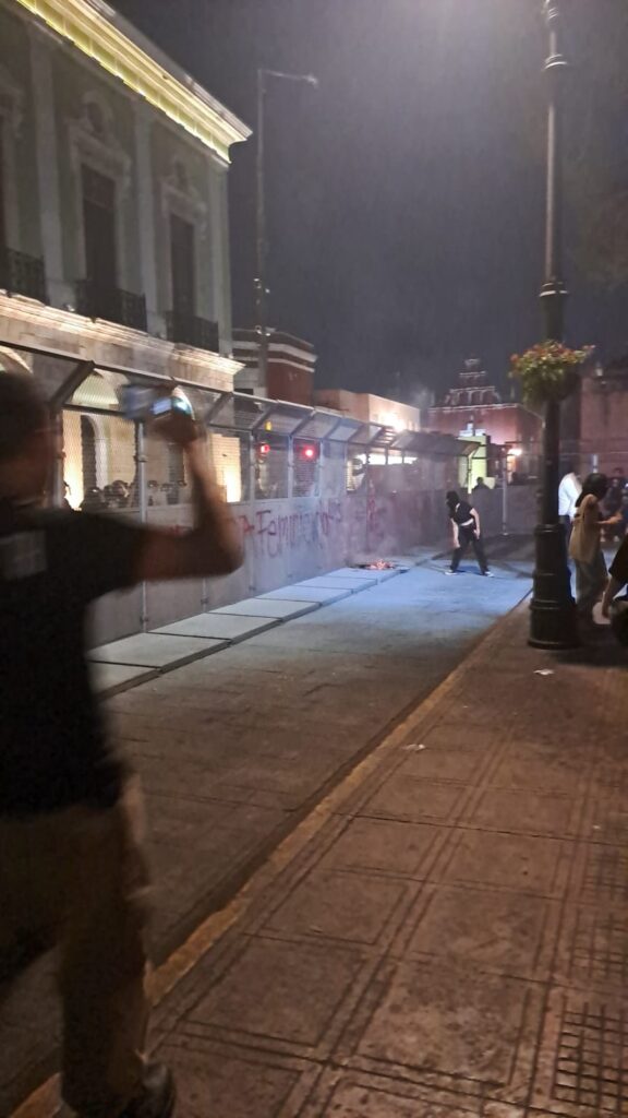 Y es que, como indicamos antes, a los actos vandálicos se sumaron varones, quienes con tubos metálicos rompieron una de las vallas en Plaza Grande y realizaron pintas y quemas en el Palacio Municipal de Mérida, acciones que continuaron hasta casi la medianoche.