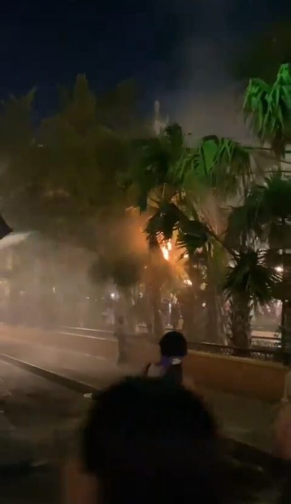 Pero la pinta de edificios fue superado por el intento de quemar a los bomberos que sofocaron detrás de las vallas el incendio de los árboles de la Plaza Grande situados frente al Palacio de Gobierno,