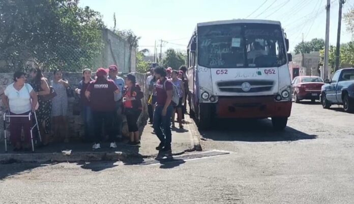 Algunos choferes de autobuses estacionaron sus vehículos en las calles laterales del centro de desarrollo integral de San José Tecoh, a unas cuantas esquinas del lugar principal del evento. Se observó que personas de la tercera edad o con discapacidades fueron movilizadas en transporte convencional, aunque se les brindó la cortesía de descender a una corta distancia del sitio.