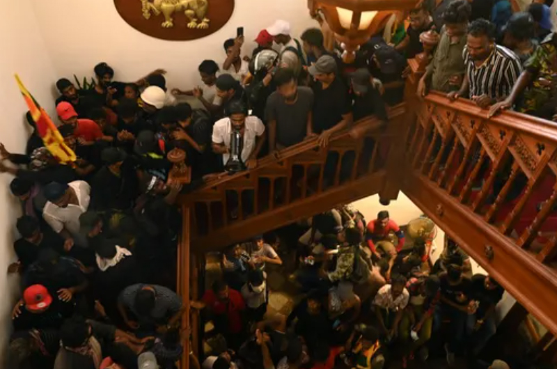 Manifestantes antigubernamentales desafiaron los gases lacrimógenos, cañones de agua y la declaración de un estado de emergencia e irrumpieron en la oficina del primer ministro, tras la huida del país horas antes del presidente Gotabaya Rajapaksa.