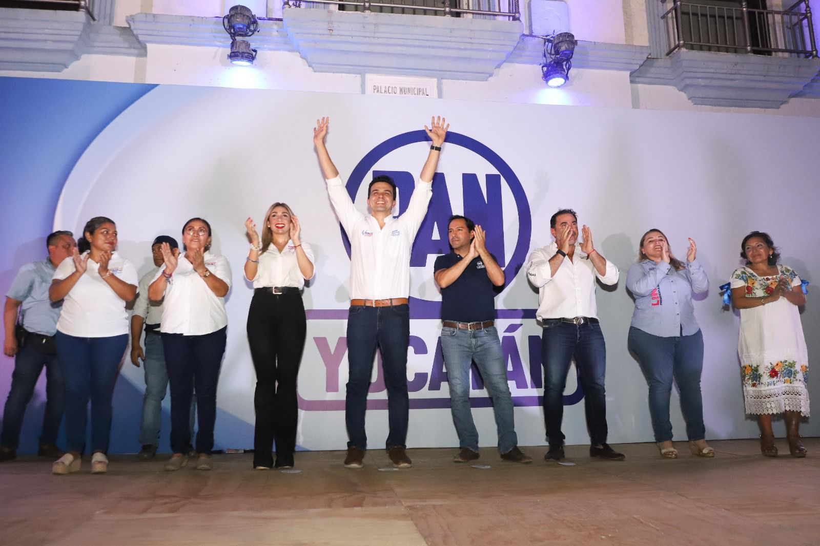 El evento tuvo lugar en el parque Hidalgo de esta ciudad que lució completamente abarrotado de simpatizantes quienes en todo momento corearon los nombres de los candidatos haciéndoles sentir su total respaldo al proyecto que encabezan y que busca continuar trabajando por la ruta de cambio y transformación trazada por los buenos gobiernos de Acción Nacional como el de Mauricio Vila Dosal.