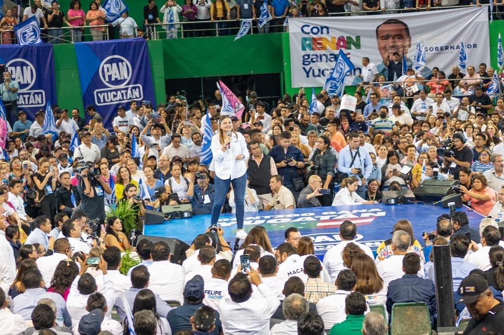 Entre muestras de apoyo, destacó la grandeza y el compromiso de los yucatecos, enfocándose en la seguridad y el rechazo a la imposición centralista. También elogió a sus compañeras de fórmula, Xóchitl Gálvez, Cecilia Patrón y Kathia Bolio, subrayando su orgullo por trabajar en equipo con ellas.