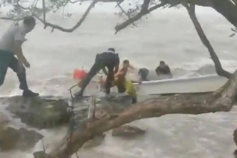 Las personas solicitaron ayuda, por lo que los elementos con el apoyo de algunos ciudadanos lograron rescatarlas, además de remolcar la lancha y llevarla hasta tierra firme.