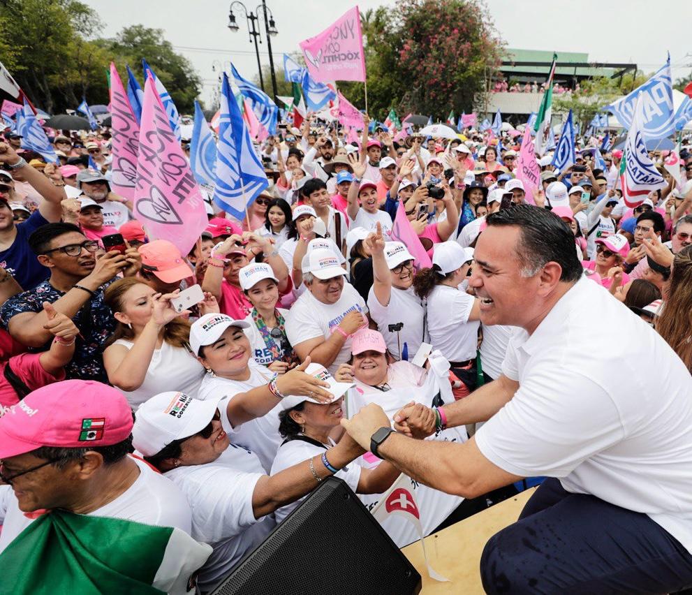 «Lo decimos fuerte y claro, Morena no pasará en Yucatán, ¡vamos a salir a votar! En dos domingos más vamos a celebrar la libertad y la democracia con Xóchitl Gálvez como presidenta de México», afirmó el candidato común a la gubernatura de Yucatán por el PAN, PRI y Nueva Alianza, Renán Barrera Concha, en mitin realizado en el Monumento a la Patria, como parte de la movilización nacional promovida por organizaciones de la sociedad civil en busca de incentivar la participación de la ciudadanía en las votaciones del próximo 2 de junio.